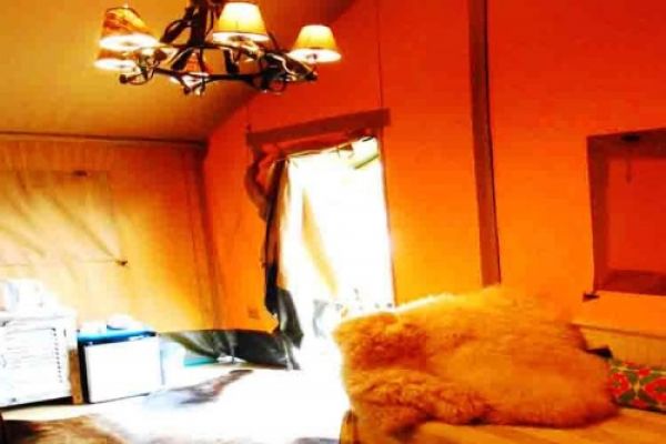 Heerlijk slapen in deze luxe (5-pers) Safaritent boomhut.